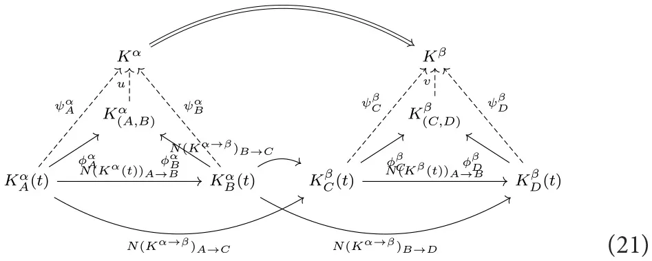 Let α and β be again two diseases, and C and D be two patients affected by disease β. The diagram in Equation (19) thus becomes: