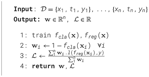 Here, P denotes the probability of the observed treatment ti given the covariates xi, estimated using a classifier fcla (primarily trained using logistic regression; further details are provided in Section 6). Algorithm 1 outlines the computation of our scheme's weights, which are then employed for treatment effect estimation via weighted regression freg.