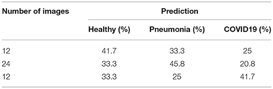 Hernandez, D., Pereira, R., and Georgevia, P. (2020). “COVID-19 detection through X-Ray chest im- ages,” in 2020 International Conference Automatics and Informatics (ICAI) (VARNA), 1–5. doi: 10.1109/ICAI50593.2020.9311372