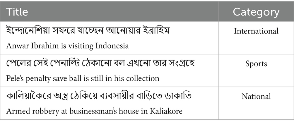 We prepared a raw dataset by ourselves. Bengali news articles are published on the newspaper websites of various newspapers as e-papers (Timeline, n.d.). The dataset is prepared manually from these four newspapers: Prothom Alo, Ittefaq, Jugantor, and Kaler Konto. We have uploaded the dataset on Mendeley, and it is publicly available (Julkar Naeen and Sourav Kumar Das, 2024).