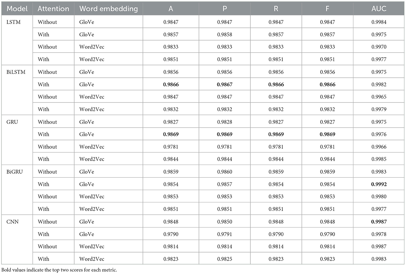 Attention mechanisms enhance predictions by selectively focusing on relevant parts of an input sequence (Niu et al., 2021; Hernández and Amigó, 2021). In sequence-to-sequence tasks, an encoder processes the input, and the decoder generates the output using attention scores that measure the importance of each input element. These scores, computed via additive, dot-product, or multiplicative attention, are normalized with softmax to produce weights. A weighted sum of encoder states forms the context vector, guiding decoding. In our classification task, attention follows the same process with slight architectural adjustments for text classification.