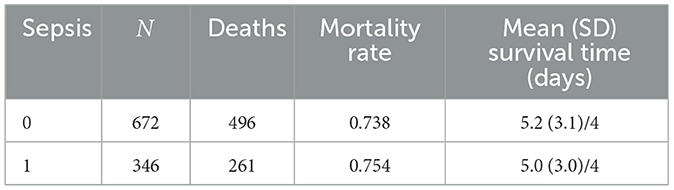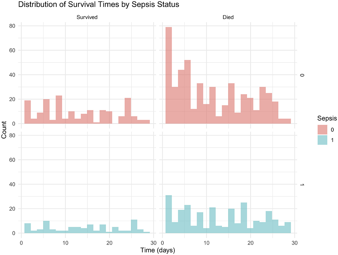Additionally, retrospective data often lack precise timing of diagnosis, illness severity, or treatment initiation, which limits accurate interpretation. Similar patterns have been observed in other retrospective cohorts (Singh et al., 2022), emphasizing the need for caution when interpreting unusual associations from observational data. Future research should incorporate time-varying variables as well as sepsis severity to better account for such biases in observational data.