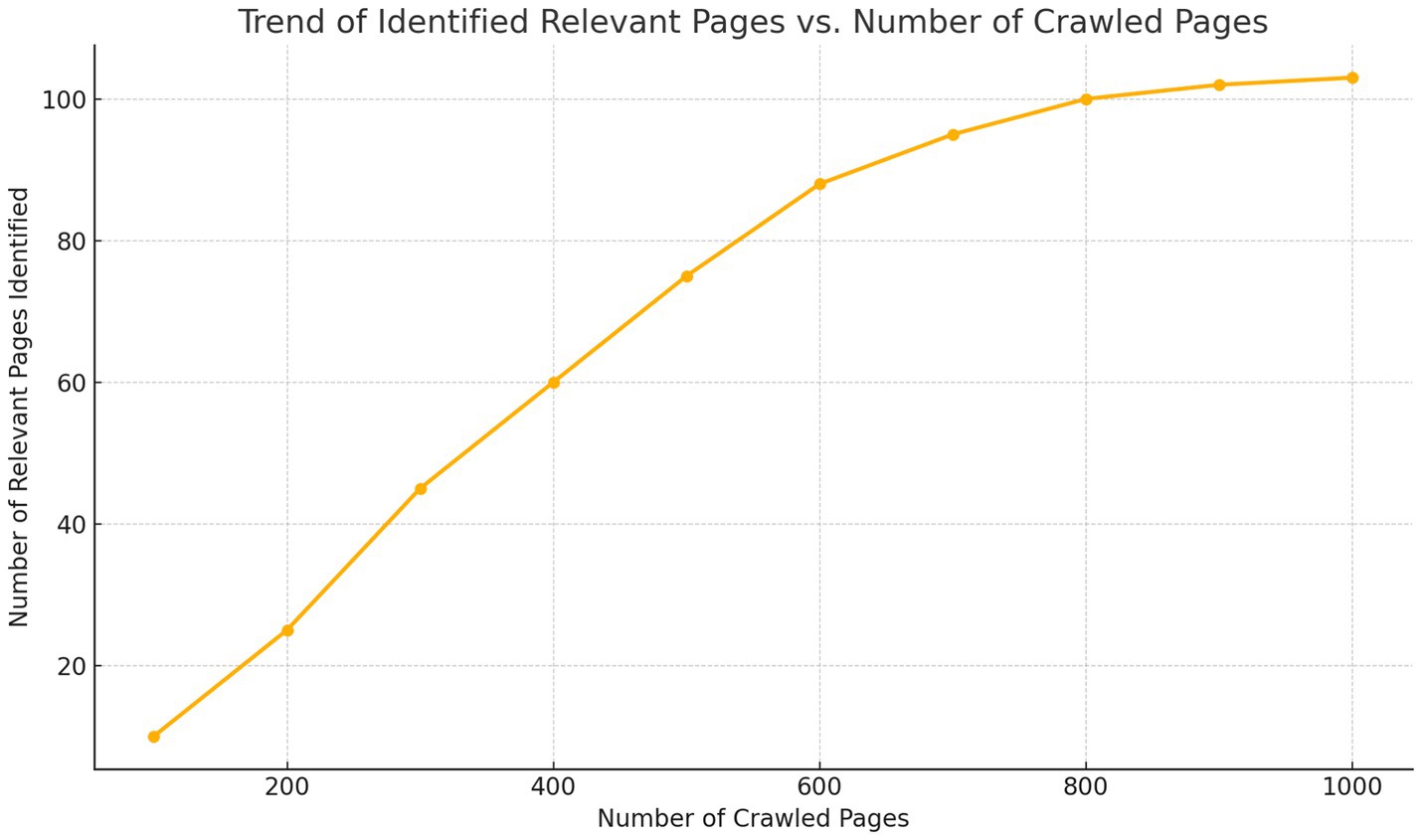 These results demonstrate that the learning-based crawler effectively “zeroes in” on parts of the web rich in target entities. We observed the RL crawler improving over time: in early stages (<5,000 pages) it performed similarly to baseline (both around 3–5% yield), but after about 10,000 pages it started outperforming as it updated its policy. By 50,000 pages, the gap was large as noted. The baseline, lacking learning, often wasted effort on irrelevant branches (e.g., crawling deep into unrelated sites because of superficial keyword matches), whereas Scrapus learned to avoid those. This aligns with prior focused crawling research – Chakrabarti et al. (1999) reported improved efficiency with relevance feedback, and our approach amplifies that via RL. We also tracked the diversity of sources: Scrapus’s crawler covered a broader array of domains (finding relevant info on an average of 820 distinct domains in our runs, vs. 560 for baseline), indicating it did not overly focus on just a few sites but rather found many niche sources (likely due to exploration). This broad coverage is advantageous for lead generation, as valuable leads can be buried in obscure corners of the web.