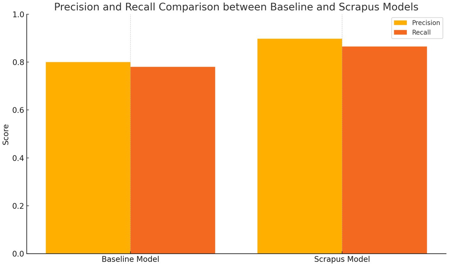 Next, we evaluated the accuracy of Scrapus’s named entity recognition and fact extraction on the crawled content. On our annotated evaluation set of pages, the extraction module achieved a 92.3% F1-score for entity recognition, with 93.1% precision and 91.5% recall for organization names and other relevant entities. This high accuracy approaches state-of-the-art NER performance on open-web data, which is around 90–94% F1 for well-trained models. It also represents a substantial gain over a baseline extraction approach using an off-the-shelf NER tagger without our profile-specific fine-tuning, which yielded around 85% F1 in our experiments. In practical terms, our extraction finds almost all the companies mentioned (recall >91%) and is very precise in filtering out non-company text (precision ~93%). The few errors were mostly minor: e.g., missing a secondary entity in a long paragraph or misclassifying an entity type (like labeling a product name as an Organization in one case). We did not encounter any critical failures like missing the main company on a page.