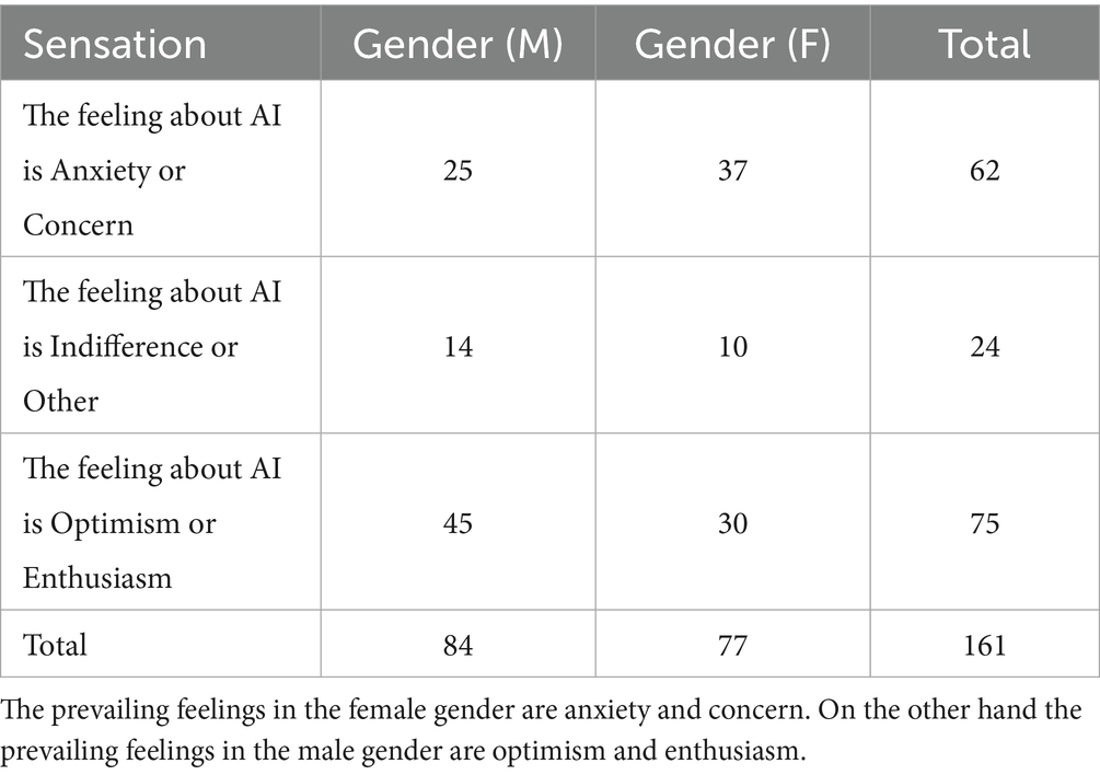 Table 2. Relationship between sensations about the impact of AI on future doctor’s career and the interviewee’s gender.