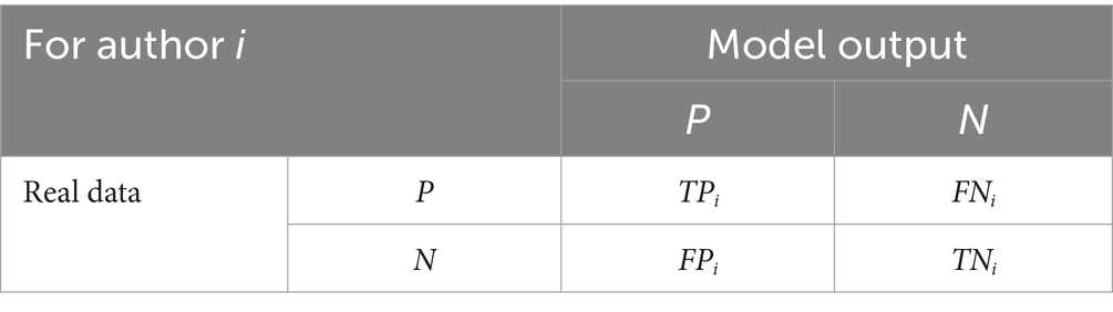We used two types of classifiers, Random Forest (RF) and AdaBoost (Ada), which have been reported to achieve relatively high performance. For RF, we used the default settings of the randomForest (ntree = 500, maxnodes = NULL, …) function in the R package randomForest. This function is based on the algorithm proposed by Breiman (2001). However, although XGBoost is reported to have excellent performance among boosting algorithms, our study, which focused on using stylistic features, did not obtain any results that demonstrated XGBoost’s superior performance over AdaBoost (Liu and Jin, 2022). For AdaBoost, we used the default settings of the boosting (boos = TRUE, mfinal = 100, coeflearn = ‘Breiman’…,) function in the R package adabag. This function is based on the algorithm AdaBoost.M1 (Alfaro et al., 2013).