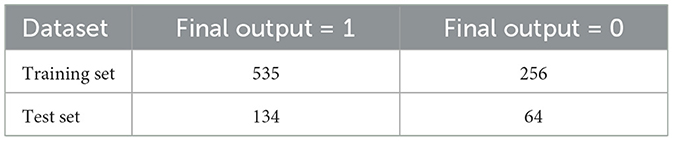 In order to have a robust evaluation of the model, an 80-20 train-test split is implemented; 80% of the data is used to train the model and 20% as the test data. This approach helps to have a good amount of training data and a separate set of test data for evaluation and checking the model's performance and ability to generalize to data it has not seen before. Stratified k-fold cross-validation was also used during training to have a robust and generalizable model evaluation. The approach retains the class distribution of each fold and avoids the bias that might arise due to non-equal data division, and it reduces the drop to an observed model estimation. After data split, the training and testing datasets are shown in Table 7.