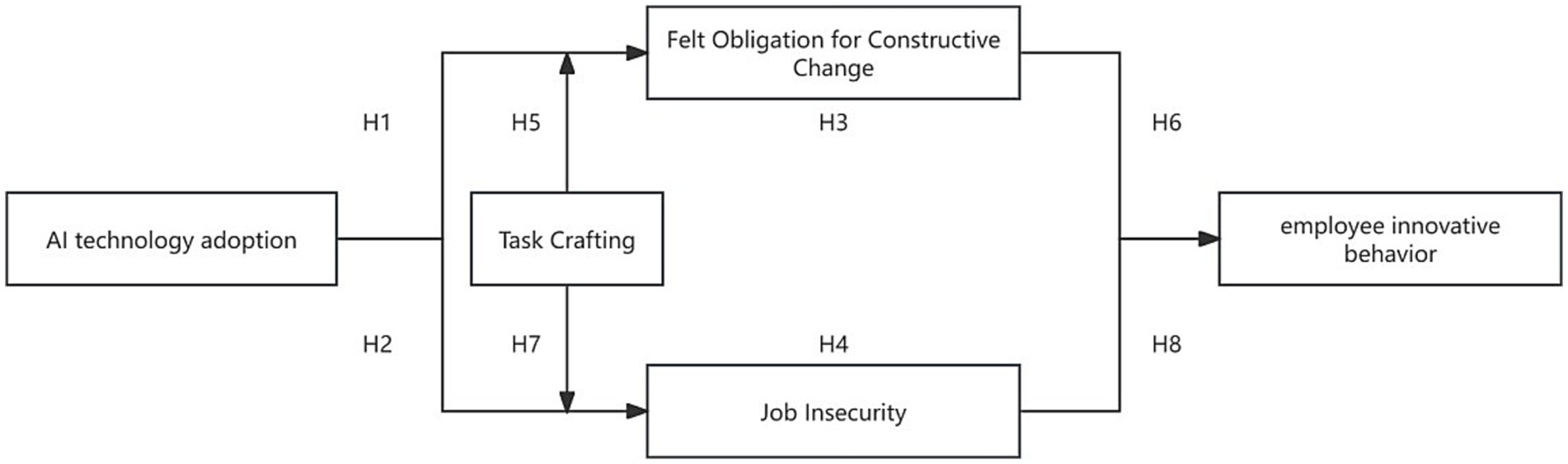 Keywords: AI technology adoption, job demands-resources model, task crafting, employee innovative behavior, felt obligation for constructive change