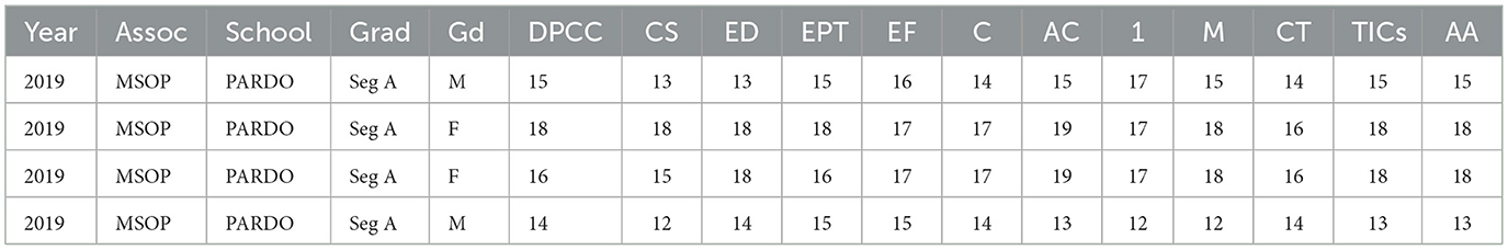 In this research, characteristics linked to students' academic performance were selected, the most important being the grades obtained from their report cards throughout their time at school. Demographic variables such as gender, location by department and city, and courses completed were also included, as these data provide relevant information about students' personal backgrounds and could have an impact on their academic performance (see Table 2). Meanwhile, the structure and presentation of the data followed the data organization presented in Kord et al. (2025).