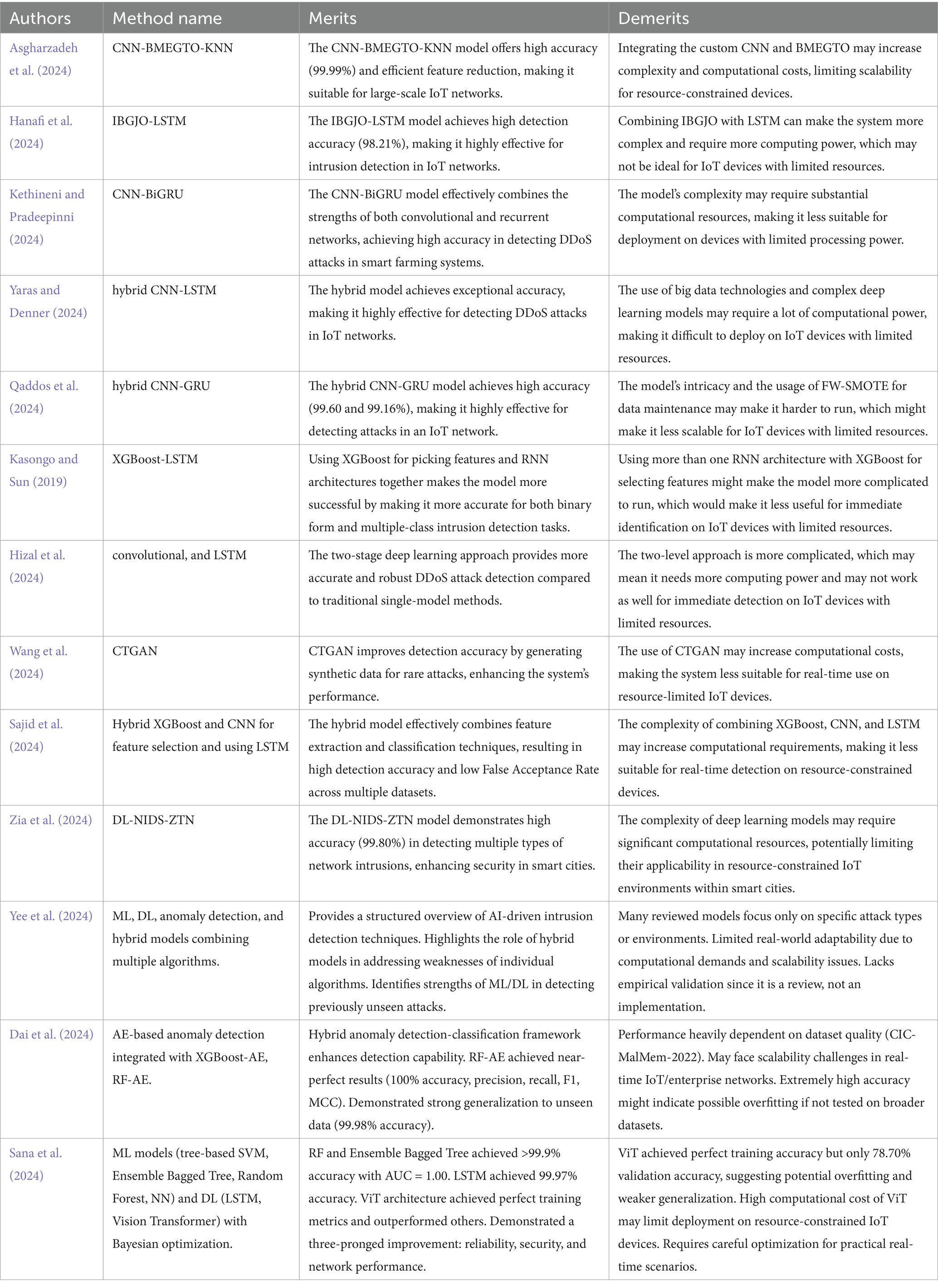 Deep Neural Networks (DNN) are effective in handling large volume of data, finding patterns, and sorting data. These systems are great for AIDS, since they track on servers, clouds, sensors, and devices to keep IoT infrastructure safe. Suricata and Snort are two examples of IDS that can help to minimize the damage caused by botnet attacks. These systems use analytical methods to analyze how malware behaves in certain settings (Lifi et al., 2023; Alkhonaini et al., 2024). DL and ML approaches require this behavioral information since they need to keep collecting data while the virus is functioning. These approaches show how malware can affect a system and cause problems (Alrefaei and Illyas, 2024; Nazir et al., 2024).
