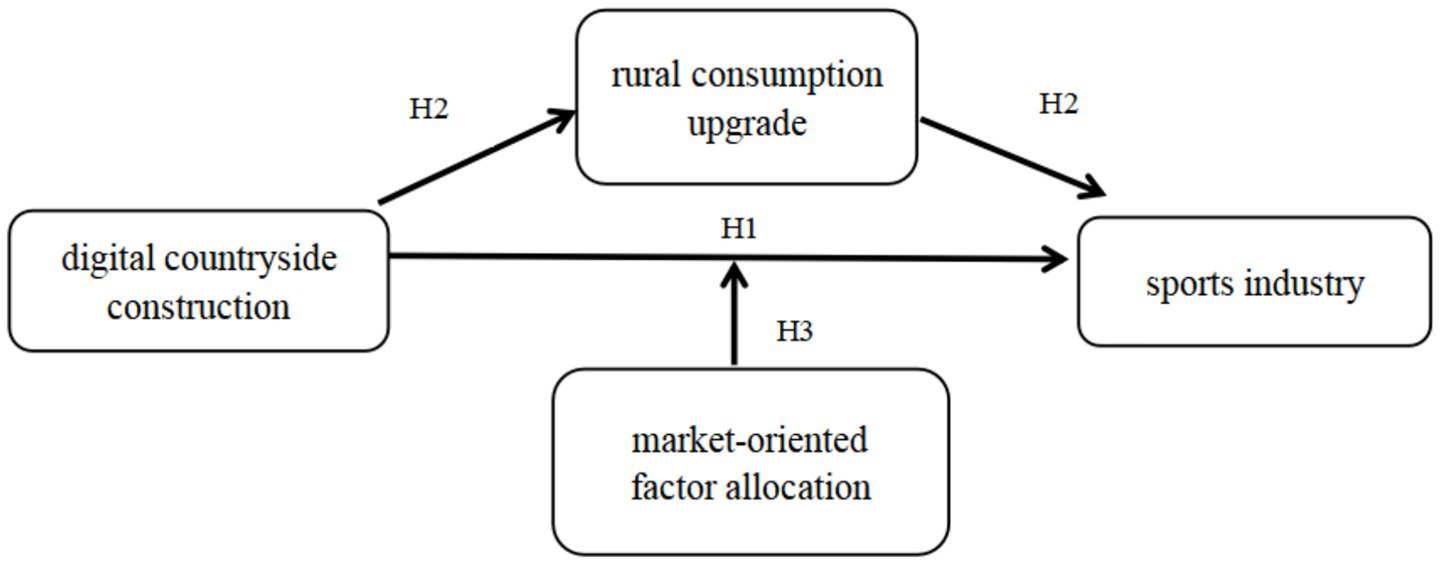 Moreover, DCC has transformed the sports consumption behavior of rural residents. The prevalence of smart devices has facilitated convenient access to fitness content, while services such as remote coaching and online classes have increased sports participation. These changes have not only stimulated rural demand for sports consumption but also prompted the sports industry to optimize its supply structure to meet the DCCerse and personalized market needs (Zhang and Dong, 2024). Based on the above analysis, the following research hypothesis is proposed: