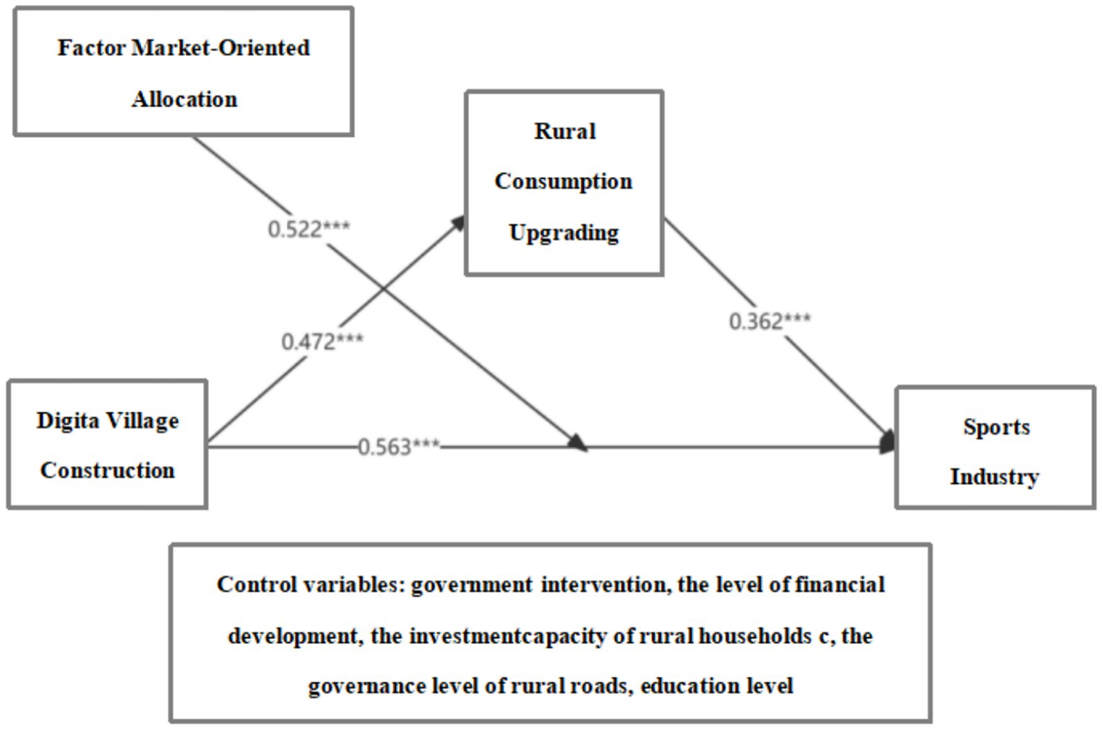 Keywords: digital countryside construction, sports industry, market-oriented factor allocation, rural consumption upgrade, structural equation model