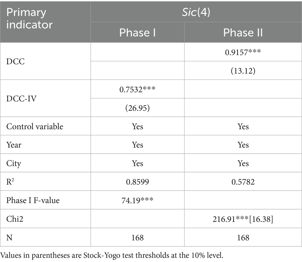 When assessing the impact of DCC on the development of the sports industry, two potential key sources of endogeneity arise. The first is the omitted variable bias, where unobservable factors—such as local policy initiatives or regional cultural attributes—might simultaneously influence the development of both the digital infrastructure and the sports industry growth, leading to biased regression estimates. The second is the issue of reverse causality: digital technologies promote the dissemination and interactivity of sports events, thereby fostering the development of the sports industry. Consequently, the growth of the sports industry may further drive the innovation and application of digital technologies in rural construction. This dynamic, bidirectional relationship complicates the establishment of a clear causal order, reflecting a mutually reinforcing feedback loop between technological innovation and industrial development.