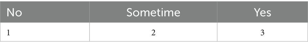 The research type scale included three Likert scale as follows: