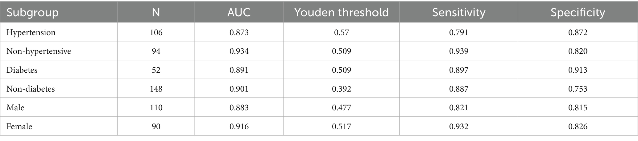 In comparison with classical clinical risk prediction models, the results of this study also demonstrated encouraging significance. According to the literature, the Framingham risk score typically achieves an AUC of 0.70–0.75 (Wilson et al., 1998; D’Agostino et al., 2008; Lin et al., 2020), while the ASCVD 10-year risk assessment reports an AUC of approximately 0.74–0.78 (Andrus and Lacaille, 2014). These models are primarily designed for long-term risk prediction in asymptomatic populations, whereas the present model focuses on cross-sectional, real-time screening and diagnosis. In the external validation cohort, our model achieved an AUC of 0.91, indicating superior discriminative ability. Although this comparison is indirect, it suggests that image-based artificial intelligence tools may provide complementary value to existing clinical risk prediction methods, warranting further validation in future studies that integrate clinical variables with image features.