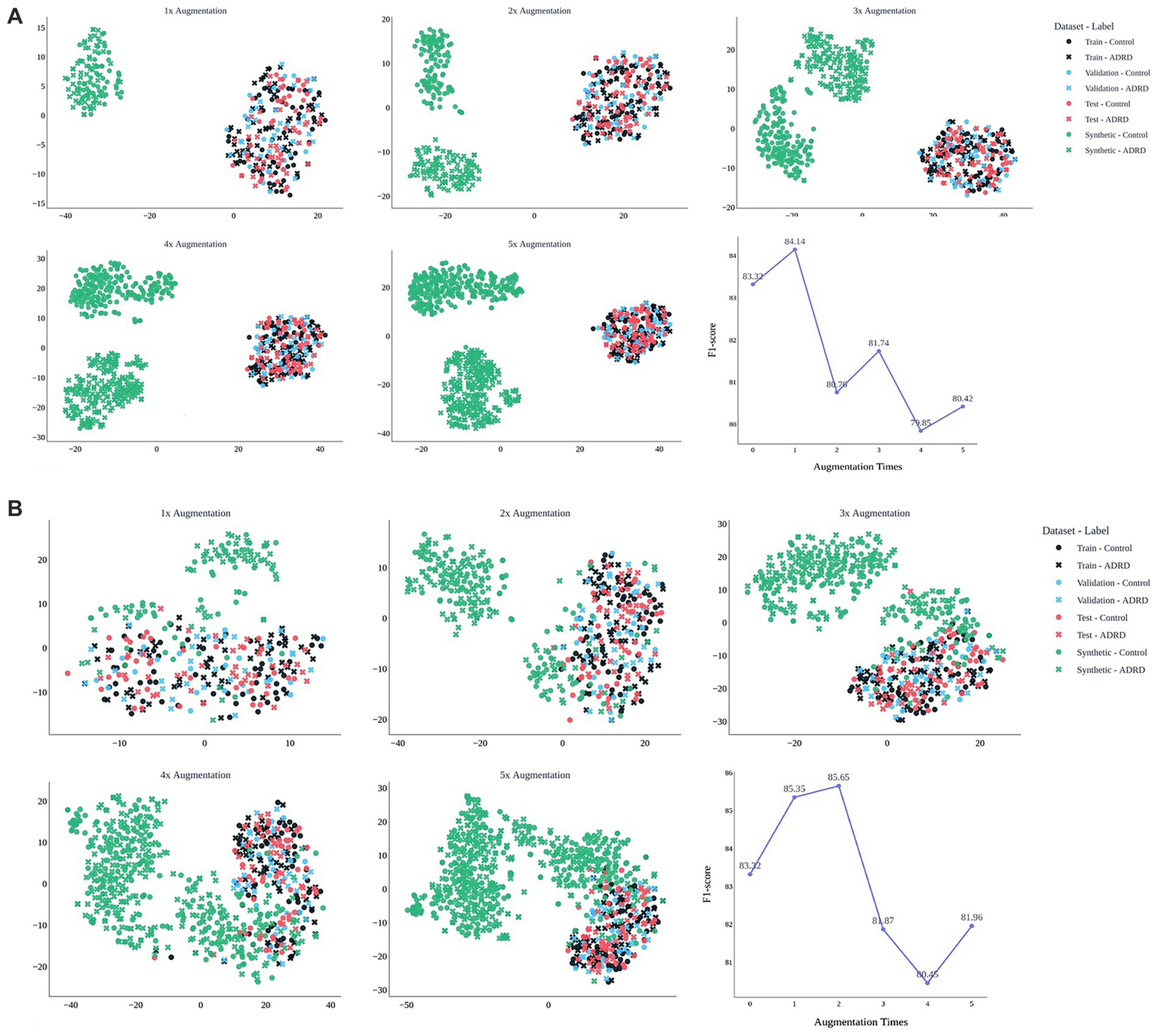 Using the best configuration for each LLM, we generated synthetic data at 1x to 5x the size of the original training set and measured the fusion-based screening model’s performance. This assessed whether larger volumes of synthetic text enhanced generalizability while preserving diagnostic cues.