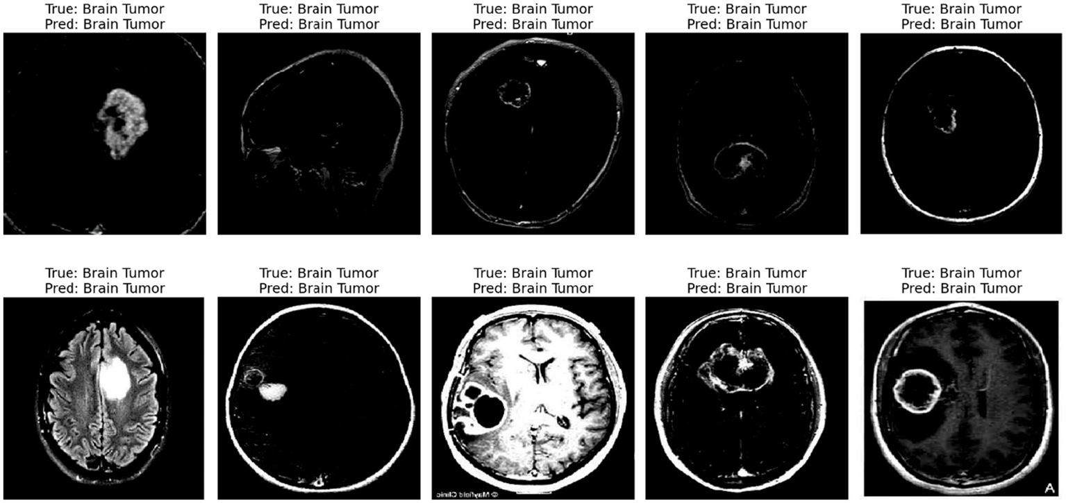 The model achieved 99.58% training accuracy, 99.71% validation accuracy, and 100.00% testing accuracy, alongside minimal loss values of 0.0103, 0.0051, and 0.0026, respectively. These results demonstrate the robustness and precision of the proposed framework in brain tumor classification.