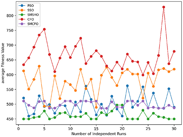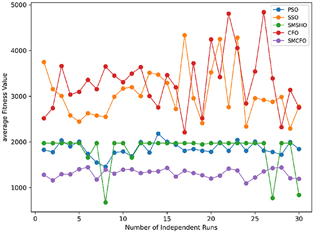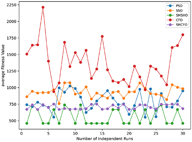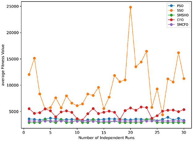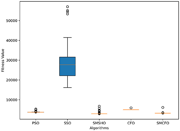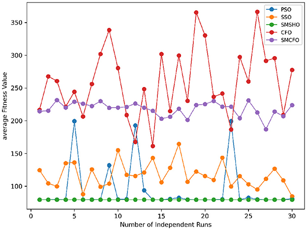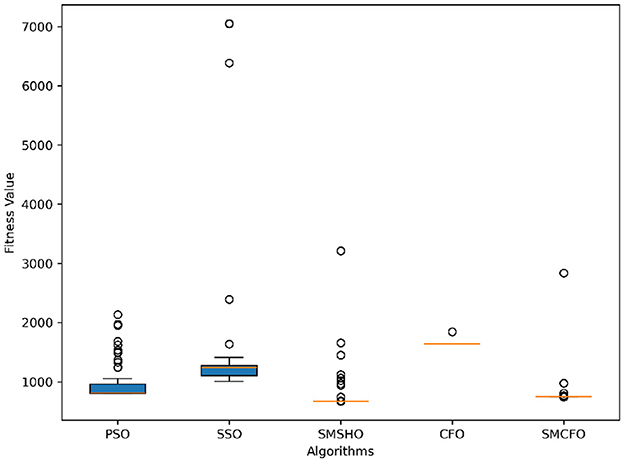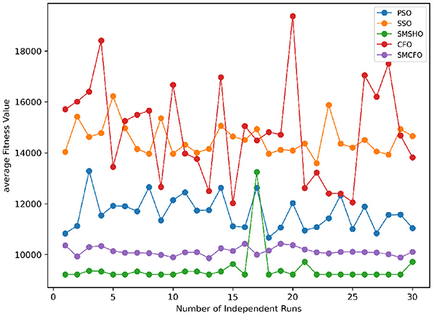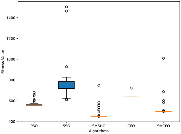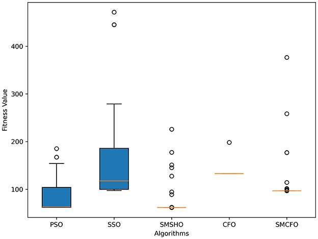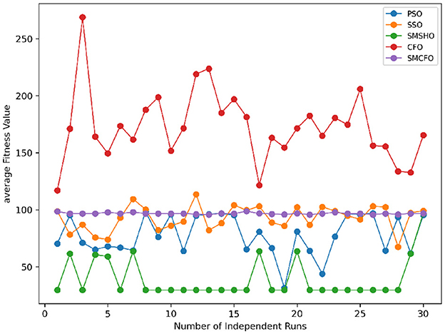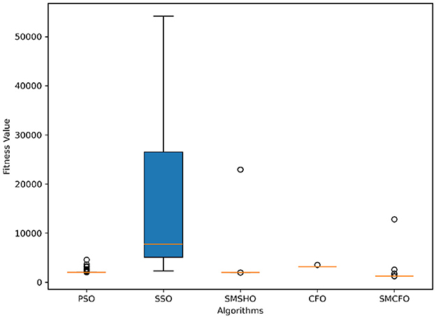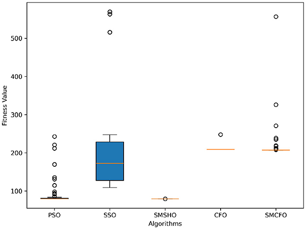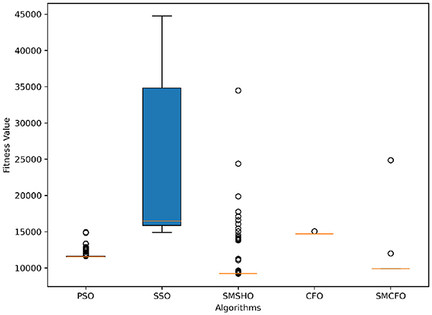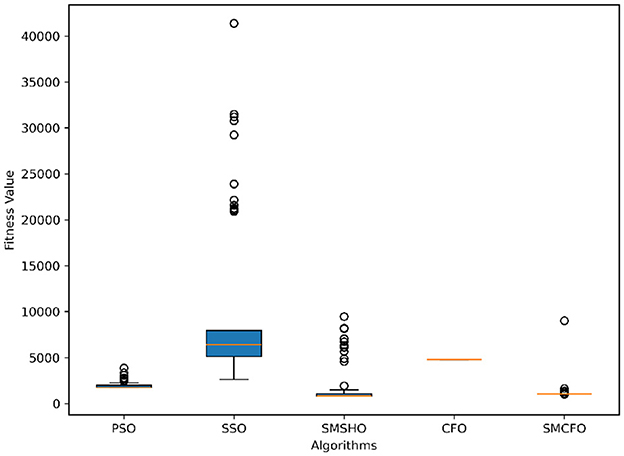 Stability of the proposed algorithm is evaluated using experimental data from 30 independent runs, as detailed in Section 5.3. The assessment includes all considered algorithms—PSO, SSO, SMPSO, CFO, and SMCFO—across benchmark datasets. Figures 28–35 present the stability curves of all the evaluated algorithms–PSO, SSO, SMPSO, CFO, and the proposed SMCFO–across various benchmark datasets. The stability plots measure the distribution of the obtained fitness values based on 30 independent runs of each algorithm. Across the datasets, the proposed algorithm shows minimal or zero variance in its fitness values at all points, unlike the original algorithms, which show higher variability. Such stability of performance guarantees that the proposed approach achieves a more stable and uniform convergence process. The minor variance demonstrates the strength of the proposed algorithm. It confirms its ability to maintain solution quality under repeated runs, thereby constructing its superior stability compared to the baseline algorithms.