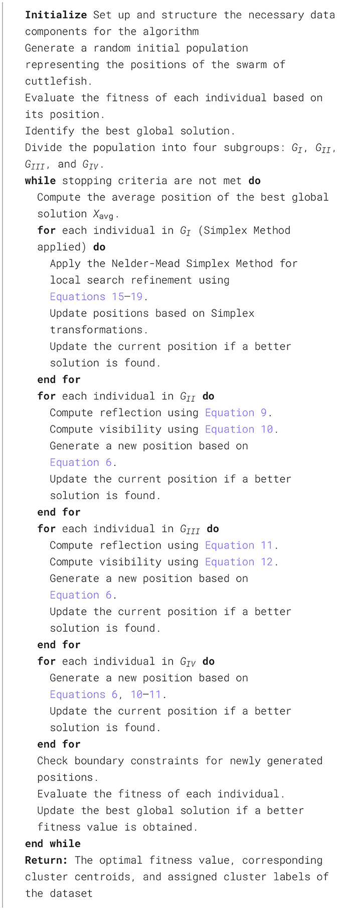 Citation: K. K and G. HG (2025) SMCFO: a novel cuttlefish optimization algorithm enhanced by simplex method for data clustering. Front. Artif. Intell. 8:1677059. doi: 10.3389/frai.2025.1677059