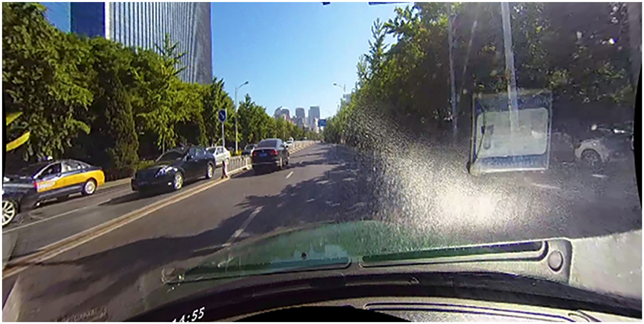Figure 1. Lane blurring from overexposure and motion obscures markings, reducing detection accuracy in challenging conditions (reproduced with permission from the CULane dataset, [https://xingangpan.github.io/projects/CULane.html]), licensed under CC-BY-NC.
