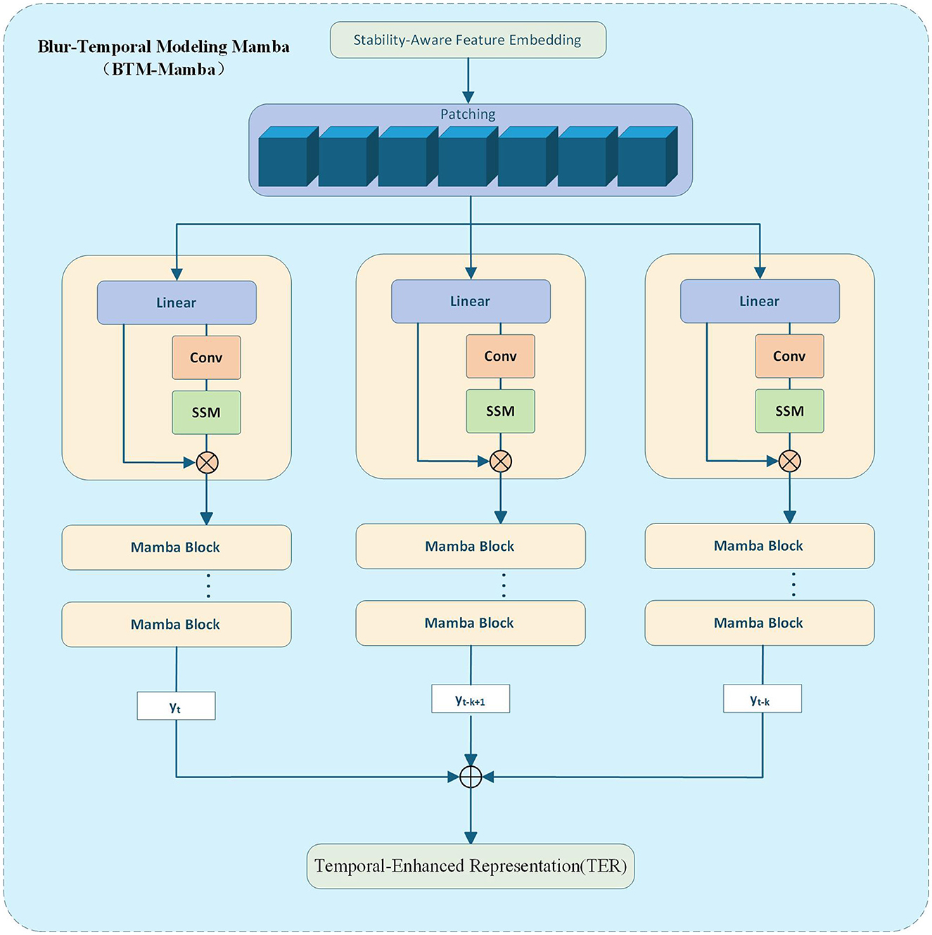 Figure 4. Depth features are stabilized, sequenced, modeled via parallel Mamba Blocks, and reconstructed into a temporal-enhanced representation (TER).