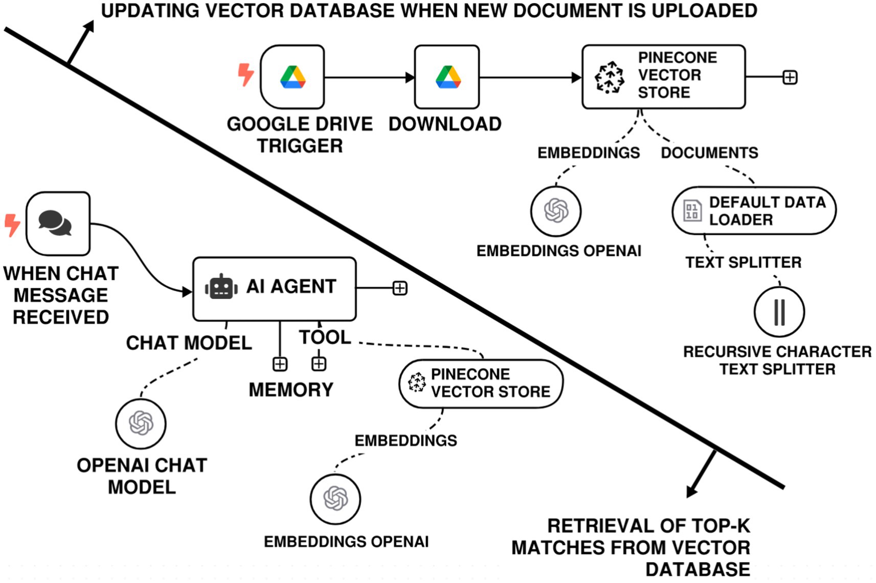 Figure 3. n8n RAG-LLM workflow with a Google Drive-based retrieval system offering a user-friendly framework for engineers and researchers.