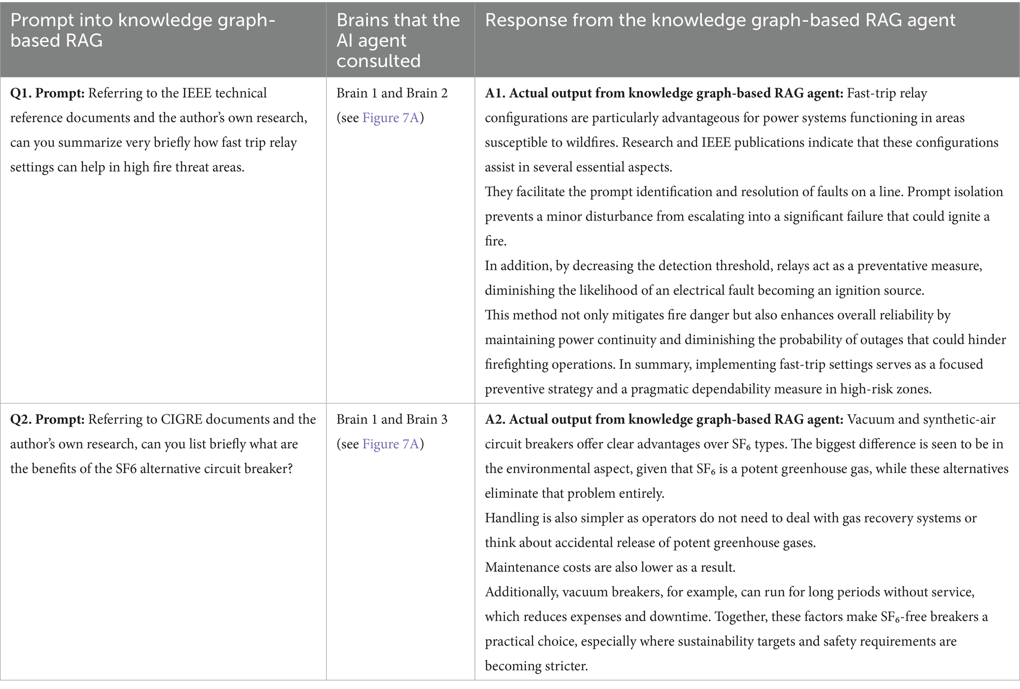 Table 6. Testing the working mechanism of the knowledge graph-based RAG implementation with the AI agent intelligently tapping the necessary dynamic knowledge graphs (brains).