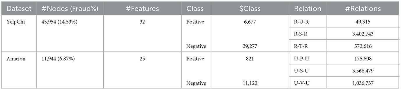 Publicly available datasets were analyzed in this study. This data can be found here: The YelpChi and Amazon graph datasets used in this study are publicly available. The YelpChi dataset can be accessed at https://www.yelp.com/dataset. The Amazon dataset is available through the Amazon Product Review API or at https://nijianmo.github.io/amazon/index.html.
