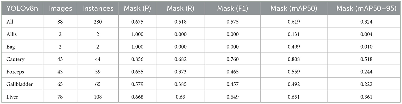 Tashtoush, A., Wang, Y., Khasawneh, M. T., Hader, A., Shazeeb, M. S., Lindsay, C. G., et al. (2025). Real-time object segmentation for laparoscopic cholecystectomy using YOLOv8. Neural Comput. Appl. 37, 2697–2710. doi: 10.1007/s00521-024-10713-1