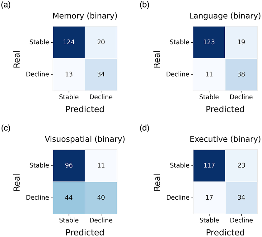 This study aimed to develop models for predicting cognitive decline across the cognitive domains described in Section 2.3. Cognitive decline was defined using two complementary criteria: (1) a quantitative measure, reflecting the annual rate of cognitive function deterioration, and (2) a qualitative measure, determined as the likelihood of an individual experiencing significant cognitive decline over time. These definitions were designed to reduce the variability inherent in single-time-point assessments of cognitive performance, by incorporating more robust longitudinal information on neurocognitive trajectories.