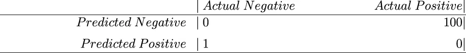 For imbalanced datasets, since there are much fewer members of class 1 than class 0, the cost of predicting a False Negative is much higher than that of predicting a False Positive. Failing to detect a real member of class 1 may produce a sample that is even more imbalanced than the original class. In contrast, predicting a False Positive has a smaller impact. This imbalance can be corrected by assigning different weights to False Negatives and False Positives. For example, in the case of a 1:100 ratio of examples in the minority class, we can define a cost matrix where the cost of a False Positive event is 1, while that of a False Negative is 100 as shown below: