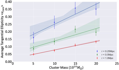On the basis of NFW-profile galaxy clusters, as discussed in Section 3.2, we generate four groups of cluster simulations with a size of
