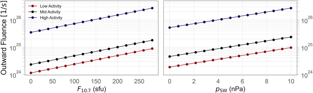 Table 6. Parameters for low-, mid (median)- and high-activity levels used to calculate outward fluence with Formula 6, depicted in Figure 10.