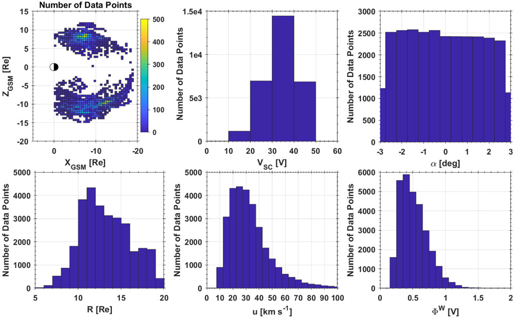 Figure 2 shows the distributions of the selected data. Measurements were made in a large part of the tail lobes, with values of
