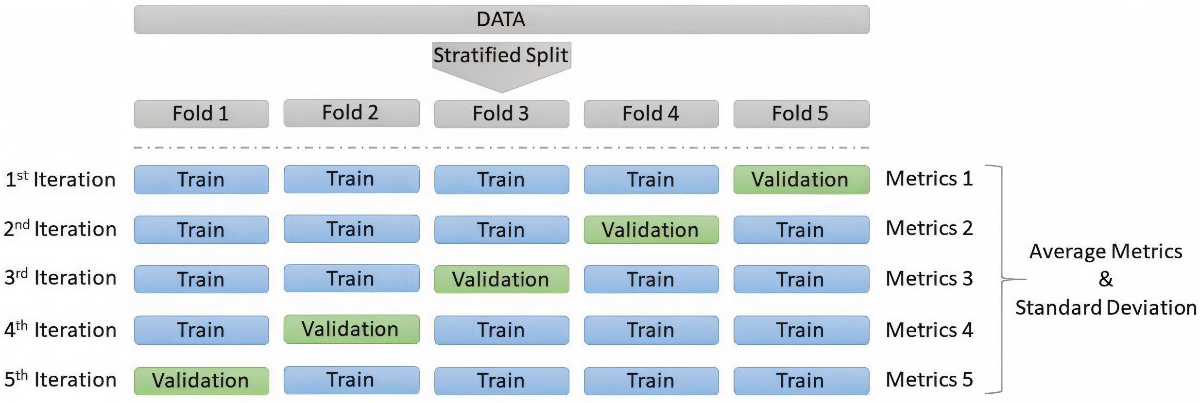 To overcome these limitations, we adopt a stratified five-fold cross-validation protocol at the sample level, as illustrated in Figure 3. Cross-Validation is widely recommended for small datasets to improve robustness and reduce variance caused by test set selection, not only in ML and DL in general (Kohavi, 1995; Refaeilzadeh et al., 2009; Raschka, 2018), but also has been widely adopted in chemometrics and bioinformatics tasks for similar reasons (Beleites and Salzer, 2008; Esbensen and Geladi, 2010; Westad and Marini, 2015). In this setup, the dataset is randomly partitioned into five folds while preserving the overall class distribution in each fold. For each iteration, 80% of the samples are used for training and 20% for validation, ensuring that every sample appears exactly once in a validation set across five independent trainings. This approach maximizes the use of available data while maintaining comparability across experiments. To ensure fairness and like-to-like comparison between the proposed methods and the original study’s baselines, we include the PLS_DA model in our evaluation using the same hyperparameters. For reproducibility, all experiments are performed with a fixed random seed of 42.