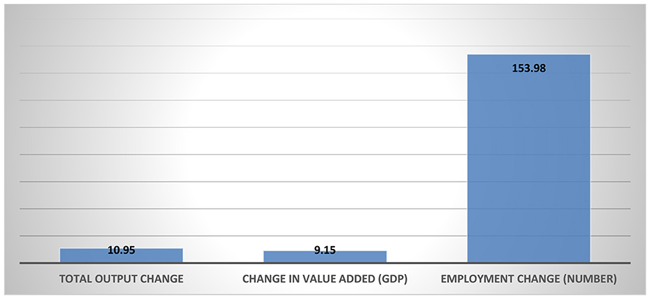 Figure 3. Scenario C: Impact on product, GVA and employment from the 25% increase in exports from the tourism sector. Source: Own calculations.