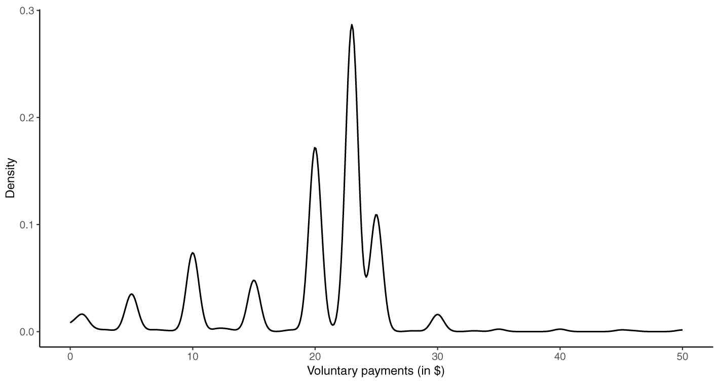 Distribution of voluntary payments Study 1.