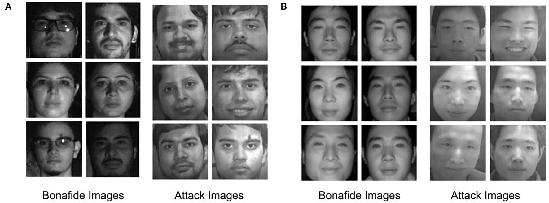 In total, 300 attacks and 152 real videos are collected as part of this Indian database. The resolution of the real and attack frame is 2, 048 × 2, 560. Face detection is performed using the Viola-Jones face detector (Viola and Jones, 2004). Characteristics of the database are given in Table 1 and samples are shown in Figure 1A.