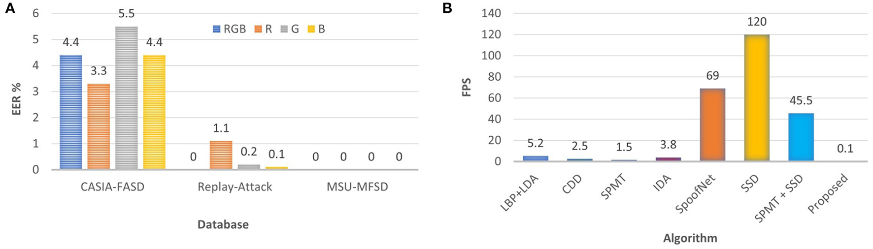The performance of the proposed algorithm is computed on the proposed Spoof-in-NIR database along with the publicly available multispectral MSSPOOF database (Chingovska et al., 2016) and the CASIA-SURF database (Zhang et al., 2020). The results are reported in terms of Bonafide (real) Presentation Classification Error Rate (BPCER), Attack Presentation Classification Error Rate (APCER), and Average Classification Error Rate (ACER) also known as Half Total Error Rate (HTER). BPCER is defined as the rate of the bonafide (real) samples classified as attack samples. APCER is the proportion of the attack samples classified as bonafide (real) samples. The results are also reported using Equal Error Rate (EER).