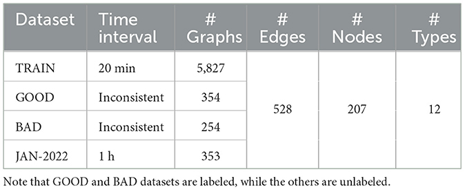 For this work, we collect four datasets which are summarized in Table 1. For the TRAIN dataset, we collect data between October 1, 2021 and February 8, 2022 and construct graphs at 20-min intervals. This dataset will be used for self-supervised training. We obtain the GOOD and BAD datasets from expert-annotated data, using a fraction of them for supervised training and the remainder as test data (see Appendix A). For the JAN-2022 dataset, we collect data from beam operations in January 2022 at one-hour intervals, which will be used to evaluate our framework.
