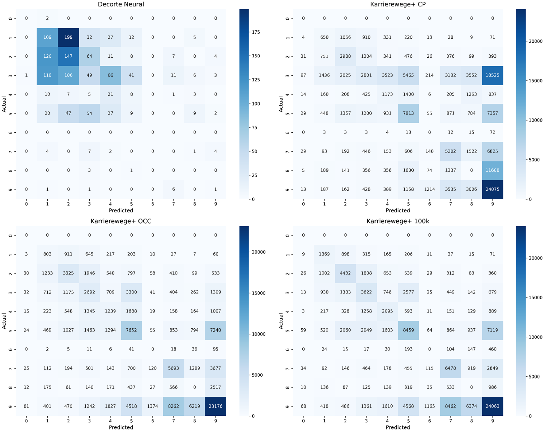 4.^ KARRIEREWEGE+: https://huggingface.co/datasets/ElenaSenger/Karrierewege_plus, DECORTE: https://huggingface.co/datasets/TechWolf/anonymous-working-histories
