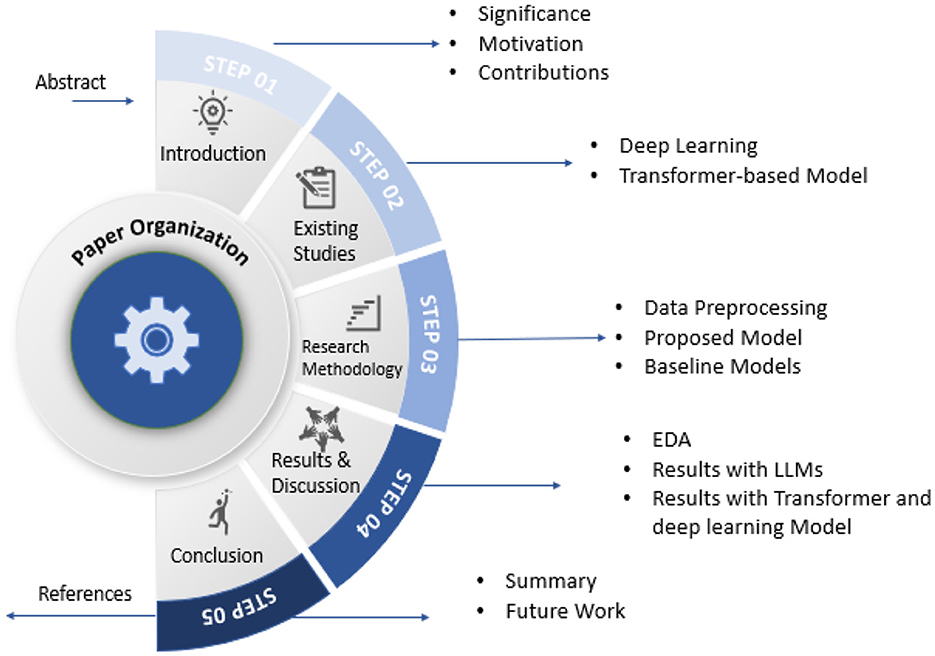 The remainder of the paper, as outlined in Figure 2, is organized as follows: Section 2 presents a comprehensive analysis of the existing literature, with a focus on deep learning techniques. Section 3 provides the roadmap of this study by discussing the steps of the proposed methodology. Section 4 presents a comprehensive analysis of the results, along with a detailed discussion. Section 5 summarizes the study by presenting conclusions and outlining future directions.