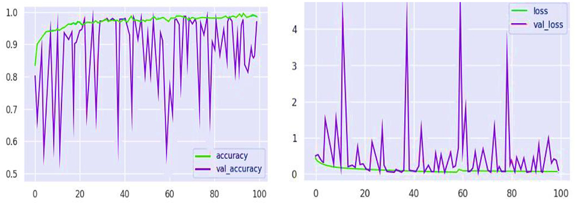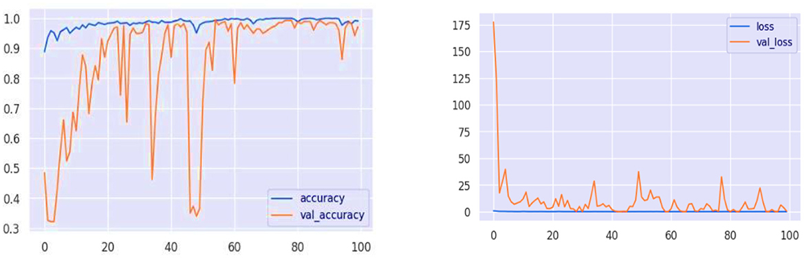 Similarly, the high recall rate highlights the fact that models can accurately identify true cases of mental health problems with a low likelihood of false negatives. Analysis of the confusion matrix shows that there are significant true positives in terms of diagnosing conditions such as anxiety, bipolar disorder, and depression, with large numbers on the matrix's diagonal. The analysis of training and validation further represents a path of convergence whereby accuracy reaches the upper thresholds, proving that the model is effective at learning. The loss graph in Figure 10, however, is random mainly in the validation loss, which indicates some drops in the model's performance on the validation data at some point(s). Similarly, these spikes are an important indicator of how responsive the model is to specific features or data anomalies, and they aid in further optimization.