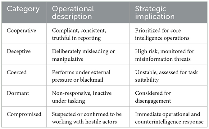 Introduction: The effectiveness of intelligence operations depends heavily on the reliability and performance of human intelligence (HUMINT) sources. Yet, source behavior is often unpredictable, deceptive or shaped by operational context, complicating resource allocation and tasking decisions.