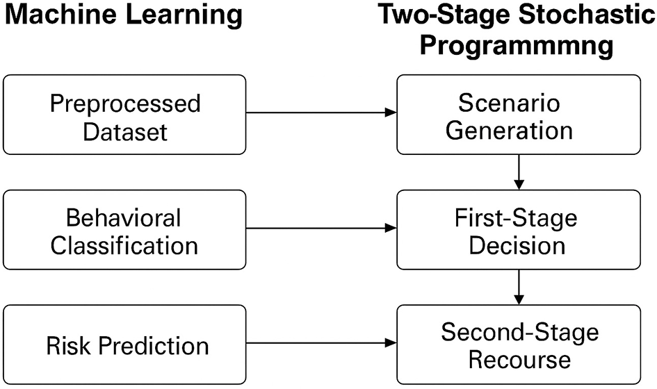 where ri ∈ [0, 1] is a deception risk score obtained through Natural Language Processing (NLP) or anomaly detection models. This integration transforms the machine learning predictions into actionable probabilistic inputs for the stochastic optimisation model (Rudin, 2019; Kaplan et al., 2021).