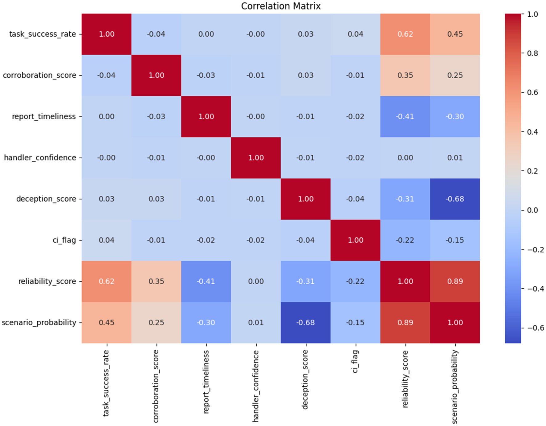 | Counterintelligence alert | Binary flag for suspected compromise or hostile influence | Categorical |