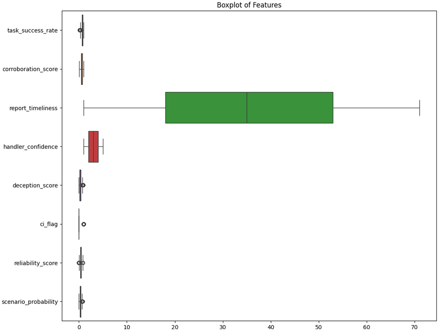| Corroboration score | Agreement with other source reports | Continuous (0–1) | Min-max scaled |