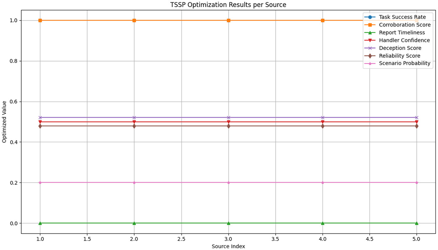 The study assigns a behavioral class to each of the simulated sources as shown in Table 2 to enrich the behavioral diversity and improve model generalizability. These categories help segment the population for training supervised learning models and structuring optimisation scenarios. These categories align with known HUMINT operational profiles and are referenced in literature on behavioral modeling in intelligence operations (Fornaciari et al., 2020; Kaplan et al., 2021).
