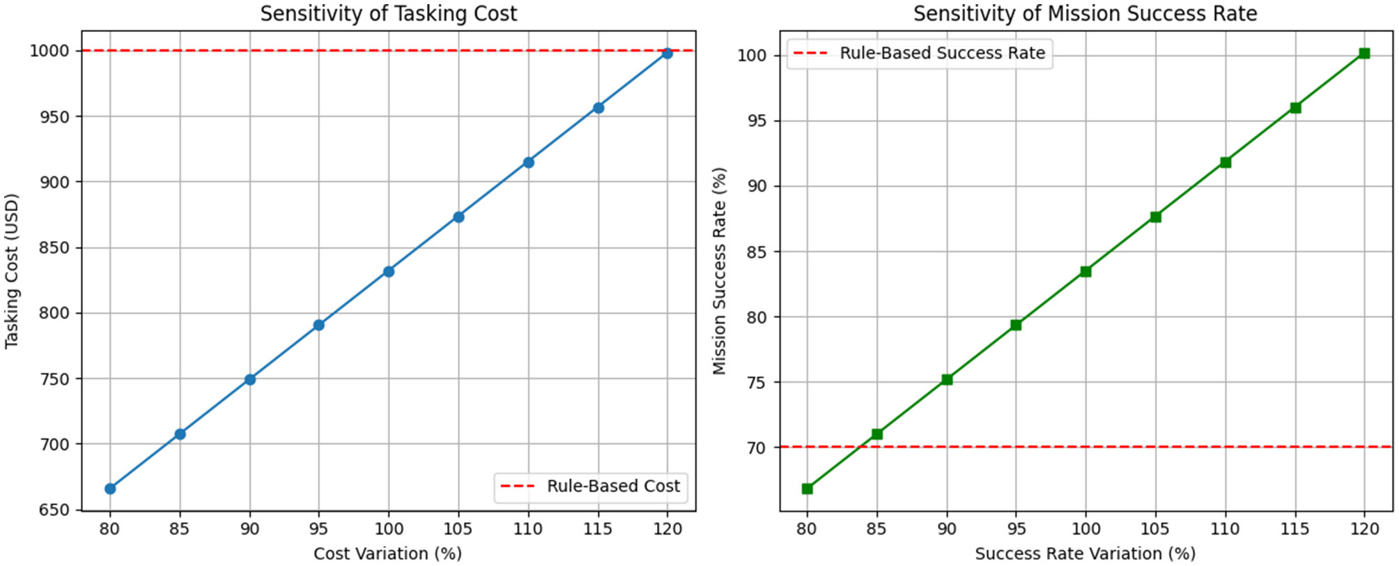 The classifiers achieved 98% overall accuracy, with XGBoost exhibiting higher precision and SVM demonstrating superior recall for rare but operationally significant categories. The regression models achieved R-squared scores of 93% for reliability and 81% for deception. These predictive outputs were transformed into scenario probabilities for integration into the TSSP model, optimizing task allocation under varying behavioral risks. When compared to a deterministic optimization baseline, the hybrid framework delivered a 16.8% reduction in expected tasking costs and a 19.3% improvement in mission success rates.