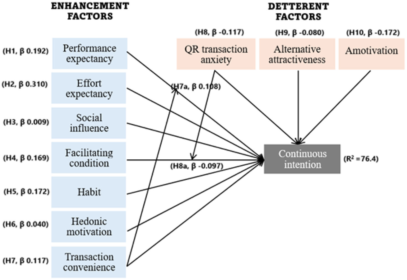H8: QTA is negatively associated with continuance intention to use QR-code m-payment.